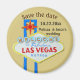 Las Vegas wedding save the date magnets. The famous welcome sign against a gold tone background.