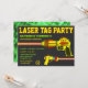 Amaze your guests with this fun birthday party invite featuring cool laser tag guns and vibrant typography against a dark grey background. Simply add your event details on this easy-to-use template to make it a one-of-a-kind invitation.