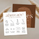 Modern boho lash extensions aftercare instructions card with modern fonts, lashes care icons and terracotta colour scheme. The modern font reads 'lashes' and 'aftercare' , the back of the cards includes icons and care tips for faux eyelash extensions. You can customise these bohemian lashes after care cards with your brand colours, logo and business details to make them your own.