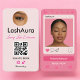 Promote your lash brand with this lash tech pink QR code photo business card. The photo-focused layout helps showcase your work while the integrated QR code allows clients to quickly access booking links, social media, or an online portfolio. The soft pink color adds a stylish, professional touch, making this card ideal for lash technicians and lash artists seeking a polished, print-ready design with digital convenience.