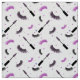 Lashes and mascara with purple glitter pattern fabric