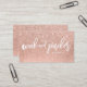 An elegant modern, stylish Lashes logo artist business card with elegant script hand lettering style typography in white on a simple faux rose gold glitter ombre faux foil background. If you need any customisation, don't hesitate in contacting me