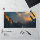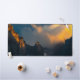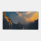 Last breath of sun shining on majestic mountains desk mat
