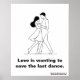 This elegant and minimalist art print by Michael Carter, Save the Last Dance, captures a timeless moment of love and connection. The illustration shows a couple dancing together, symbolising the joy of shared moments and the promise to always hold each other close. With the romantic phrase "Love is wanting to save the last dance," this piece speaks to the commitment and affection that defines a lasting relationship.