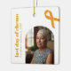 Appendix Cancer ornament helps commemorate the final day of chemotherapy. Design features amber coloured appendix cancer awareness ribbon. Personalise with name, date and photo.