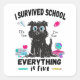 Funny school design with a stressed dog and the quote "I survived school, everything is fine". Perfect for last day of school before summer vacation or summer break. For students and teachers.