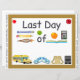 "last day", "last day of school", school, "end of year", sign, sheet, paper, "school bus", notebook, calculator
