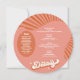 Be prepared to get groovy with the fun, unique, circular, Last Disco Bachelorette invitation. The design features a disco ball, retro script text and rust and pink sunburst stripes perfect for a 70's weekend. Customise both front and back of the invite with your Bachelorette weekend itinerary.