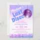 © Socialite Designs Inc. & LICENSORS. Celebrate a Disco Bachelorette party by inviting the guests with this retro glam last disco bachelorette party invitation. Colours are blue, pink and purple.