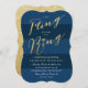 This design has a contemporary classic typographic layout on the front and a faux glitter gold image background on the back of the card.