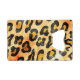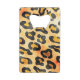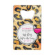 Credit card style bottle opener for a bachelorette party.  A leopard spots pattern for a background. A cool looking wine glass outlined in thick black ink. The wine inside the glass is hot pink.  Vivid and bright colours. Personalise with your bachelorette info on a white hand drawn circle. Last fling before the ring written in a cool trendy font.