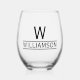 Last Name and Monogram Initial Personalised Stemless Wine Glass