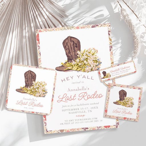 Last Rodeo Cowboy Boot Bouquet Bachelorette Party Invitation
