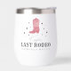 Welcome friends to your disco cowgirl or western themed bachelorette weekend with these cute personalised wine tumblers. Design features a dusty rose pink cowboy boot illustration with "last rodeo" beneath. Add your name, location name and the year.