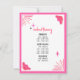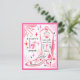 Space cowgirl, disco last rodeo themed bachelorette party invitation with illustration of a cowgirl boot with fringe, rose, lightning bolt, hearts and stars with red, pink and black colour scheme. Back side has itinerary.