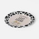 Last Rodeo Cowgirl Bachelorette Weekend Party Paper Plate with cowhide pattern accents and boho western flowers in black and soft pink.