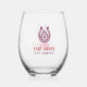 last rodeo pink and purple horseshoe floral stemless wine glass