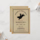 Celebrate the groom’s final days of freedom with this "Last Rodeo" Bachelor Party invitation. Featuring a vintage parchment-style background and a bold black silhouette of a bull rider, this card captures a rugged, Western aesthetic perfect for a night out or a trip to the rodeo. The classic typography and double-border frame give it a timeless, masculine feel. This template is 100% customisable: easily update the name, date, time, and location to fit your specific event. Whether you're heading to a real rodeo or just hosting a backyard BBQ with the boys, this invitation sets the perfect tone for a wild weekend.