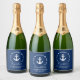 Last Sail Before The Veil Nautical Anchor Hearts Navy Blue Bachelorette Party sparkling wine Bottle Label
