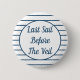 Perfectly preppy and nautical seersucker striped Bachelorette party "Last Sail Before The Veil" button in navy blue and white with customisable blue lettering