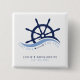 Nautical blue and white bridal shower / bachelorette party favour button with ship helm and phrase "last sail before the veil". Personalise it with your event details.