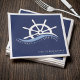 Nautical blue and white bridal shower / bachelorette party napkin with ship helm and phrase "last sail before the veil". Personalise it with your event details.