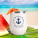 Last Sail Before The Veil Nautical Wedding Navy Blue Anchor Hearts Wine Tumbler