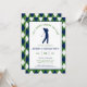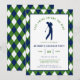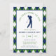 Celebrate the groom-to-be with a day on the links! This golf-themed bachelor party invitation features a classic navy, green, and white argyle pattern border that perfectly captures that country club aesthetic. The centre displays a clean silhouette of a golfer mid-swing, paired with the clever "Last Swing Before the Ring" headline. This template is fully customisable, allowing you to easily update the name, date, tee-off time, and location details. Whether you're planning a full 18 holes or a casual afternoon at the driving range, this preppy and professional invite sets the right tone for a sophisticated celebration.
