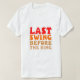 Celebrate the groom’s last night of freedom with this fun “Last Swing Before the Ring” design. Perfect for bachelor parties.