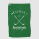 The golf towel exceeded my expectations! My husband actually approved of it! He liked the picture quality, thickness and overall usefulness of the golf towel I ordered to commemorate his lowest ever golf score. He liked it so well that I ordered 8 more towels with photos of his home golf course. Each one of the eight has the name of one of his golf group members. I will give them as party favors at my husband's 70th birthday party later this year. The different names were easy to add because the Zazzle template is so very easy to use. The colors were bright and authentic in all 9 of the towels that I made. The one of the 9 that I ordered has come out of the wash and line dry looking great.