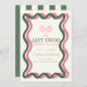 This retro "Last Swing before the Ring" bachelorette weekend itinerary invitation features a pair of pink racquets on a cream background wavy frames in pink and green. The reverse side features a cream background with green stripes/borders. Personalise for your needs. You can find more matching products at my store.