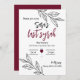 Invite your friends and family to celebrate the Bride-to-be with this wine-themed party invitation. Last Syrah is a great theme for bridal showers or bachelorette parties. The invitation is easily customisable to add your party info. Check out the matching bridal party tees in the Last Syrah collection at PetalsandStemsEvents. Enjoy!