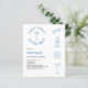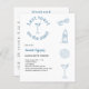 A white background. Decorated with blue coastal icons. Personalise and add the name of the bride to be and party details. Text: Last toast on the coast.