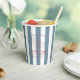 The look of these cups are a preppy take on luxury relaxation. It's a hearkening back to a time of old-money sophistication, with vintage vignettes and luxury labels. Pristine whites and horizontal stripes are the characteristic of this look. Think polo shirts and boat shoes. The quiet luxury and stealth wealth is like “comfort food". Its something nostalgic, solid and familiar.