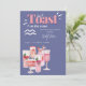 Get ready to celebrate the bride-to-be with our last toast to the coast bachelorette party weekend invitation! The dusty blue background with nice script "last toast one the coast" meets a pink cocktail arrangement and nautical wave signs. Make your last toast on the coast aesthetic with this unique and vibrant customisable invitation and details on the backside!