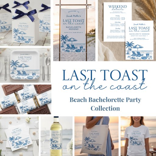 Serve up coastal charm with these Last Toast on the Coast Beach Bachelorette Party Paper Plates, perfect for beach getaways, tropical destination parties, or seaside bridal celebrations. Featuring chic beach-inspired designs, these plates add a festive touch to cocktails, brunches, poolside snacks, or sunset soirées with the bride squad.
