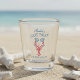 Toast the bride at the beach with these cute coastal bachelorette party shot glasses. "Last Toast on the Coast" appears in summery blue lettering, with an illustration of a red lobster clinking two champagne coupe glasses. Personalise with the bride's name.