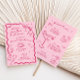 I fell for this piece as soon as I opened the package! The paper is a good quality and thickness. The envelopes it comes with are very basic, so I paired these with a fun pink that matches the pink in the background. The gals SWOONED over these! The colors are rich and crisp. The pink shows up more on the printed card than on the online preview, which I was SO thankful for. It's a lovely, subtle touch that makes the theme. Very impressed with these cards.