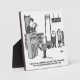 Funny cartoon of a man returning a library book to his local library, only to find that the penalty for lateness has dramatically increased. Gift for a librarian maybe. Illustration shows capital punishment by guillotine. Judge is wearing a black cap in the courtroom. Legal humour. Funny plaque.