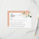 Designed to coordinate with our Late Summer watercolor floral wedding collection, this elegant botanical RSVP card features a sophisticated watercolor branch of flowers, eucalyptus leaves, orange slice, and foliage in an fresh palette of white, ivory orange, green and pink hues in the upper right side of the card with your desired response date and meal choice or entree selections.
