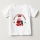 Latino baby's first Christmas tote bag, T-shirt, and other holiday items featuring a Latino baby in a Santa suit and stocking cap and candy cane striped text.