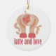 Latte and love cup, hands and coffee quote ceramic tree decoration