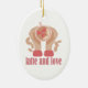 Latte and love cup, hands and coffee quote ceramic tree decoration