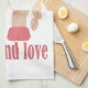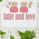 Latte and love cup, hands and coffee quote tea towel