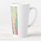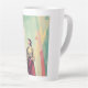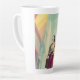 Kazuko is a Japanese photographer suspended in time, surrounded by pastel-colored architecture that seems to come out of a dream. A great latte cup with a beautiful and elegant Japanese art design showing Kazuko, a photographer in a whole vibrant world.