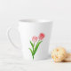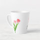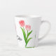 This latte mug is shown a lovely pink tulips with water droplets print.