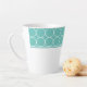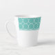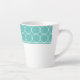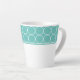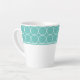 This small size latte mug is shown with a cute deep aqua and white dots print.