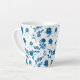 This latte mug is shown in a lovely blue floral print.
