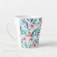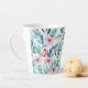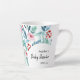 Latte Mug for baby shower, decorated with adorable watercolor plant images with soft pastel emerald and blue leaves, branches and soft pink roses.