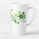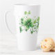 This large size latte mug is shown with a St. Patrick's Day clover art print.